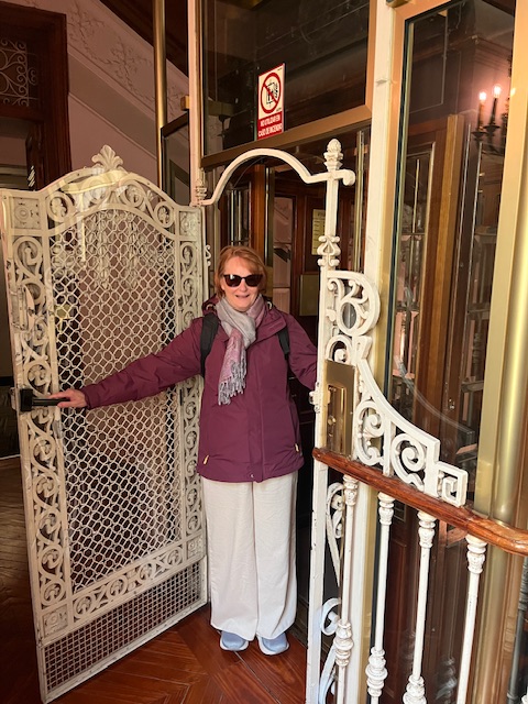 The elevator was installed in 1886 and is still in use but if you have luggage, they encourage you to use the newer elevator. We could have ridden it for hours but thought we had best grow up.