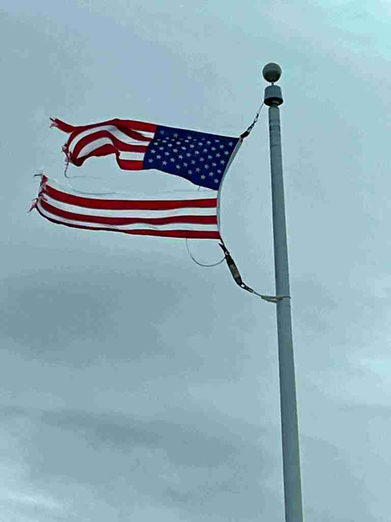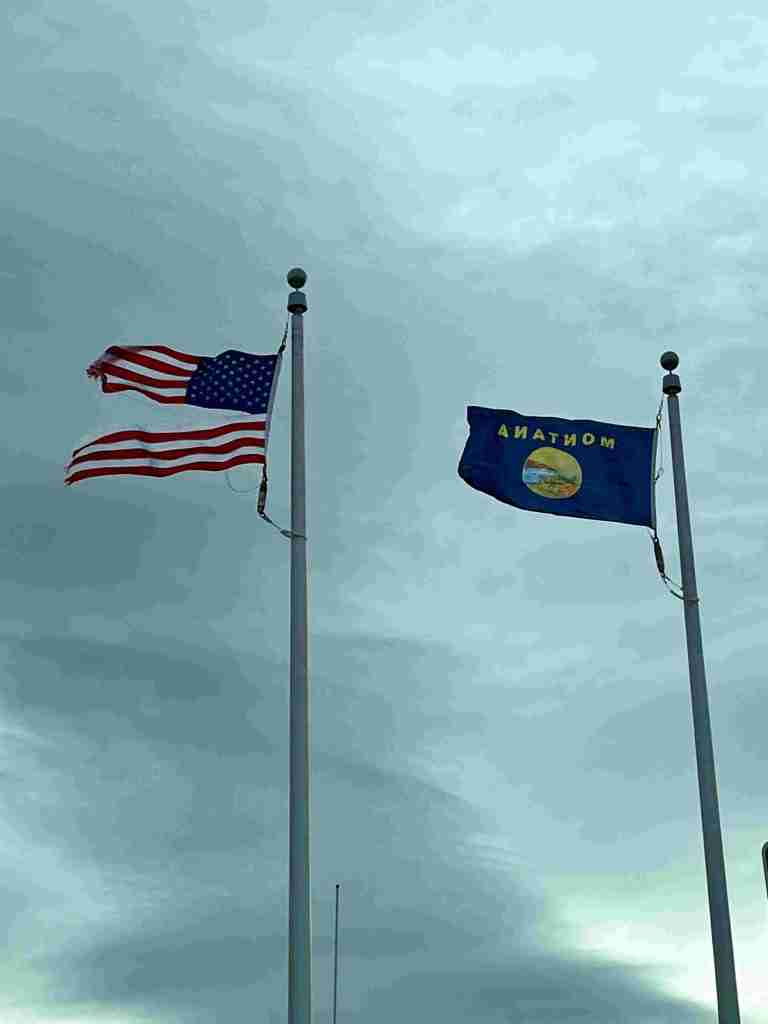 The prairies are well known for their openness and big skies and let us add in their very uncomfortable winds. We reckon they must replace these flags on a regular basis.