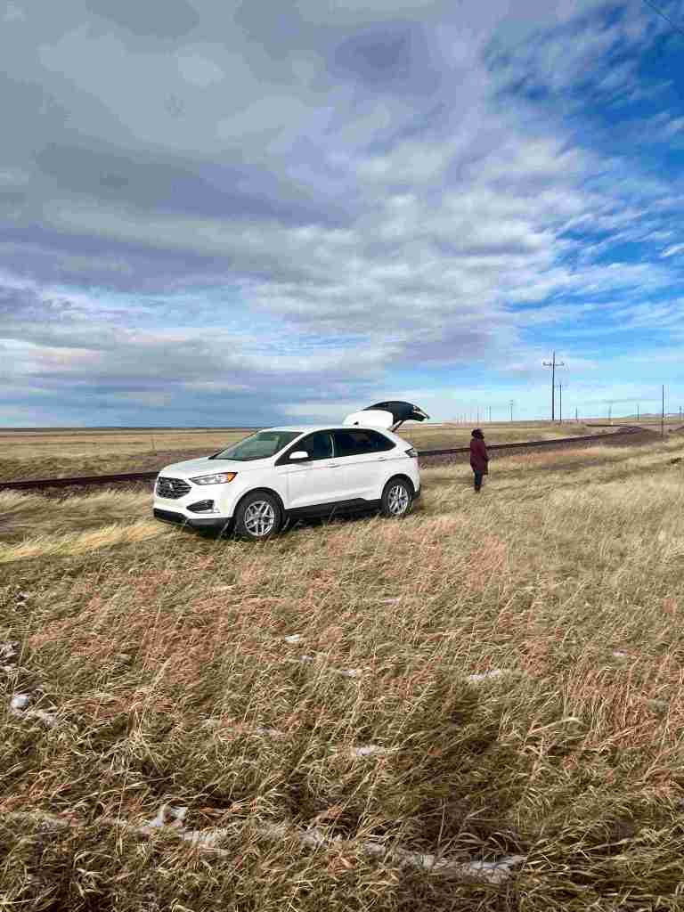 Our first surprise was just how windy it was. The navigation system was giving us real time wind warnings and we spent a lot of our time trying to avoid tumble weed that was streaming across the road. We also noted just how fuel in-efficient the car was being as it was constantly fighting the heady gusts of wind.