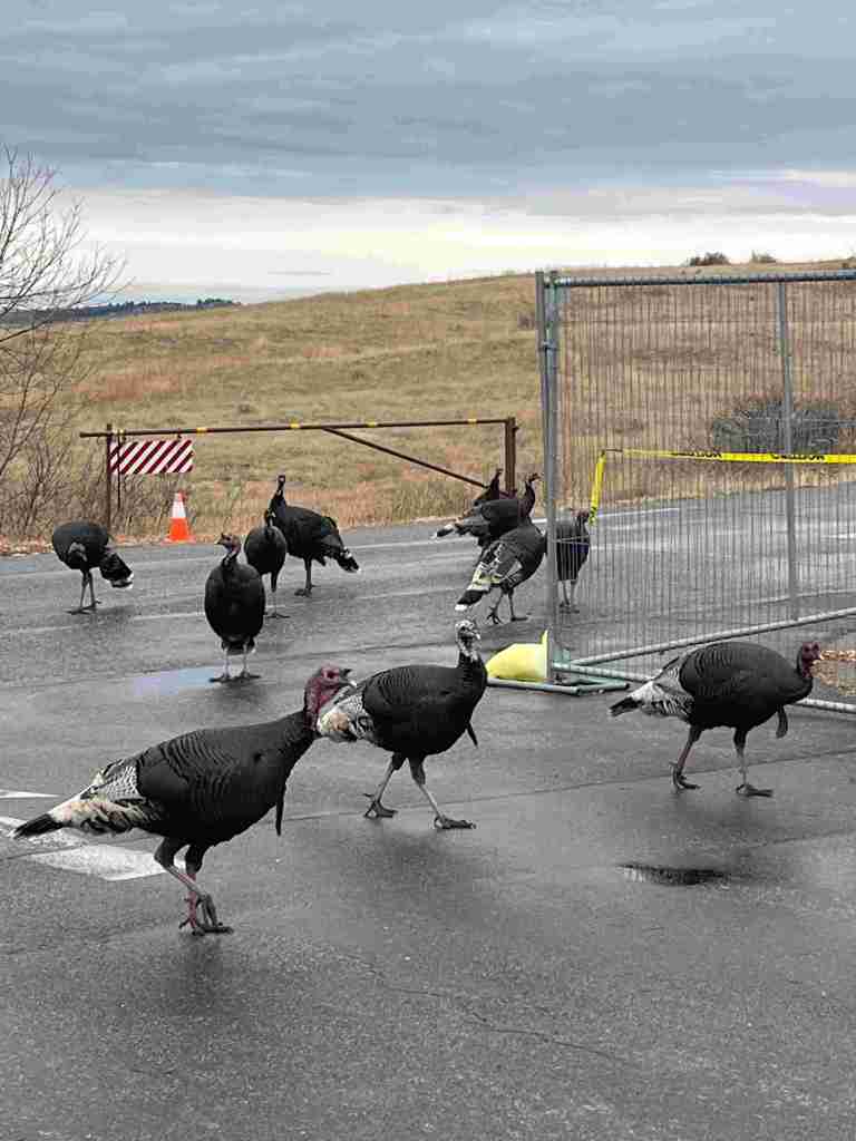 So we reckon that these are pretty smart turkeys making their last stand as they have situated themselves at the memorial site and are fairly safe from the Thanksgiving dinner table which is Thursday week, the 28th November. They aren’t the most good looking of birds and not even that nice to eat unless they are deep fried which is how our good friend Pete cooks them. Really sad to be missing out on his turkey dinner two years in a row.