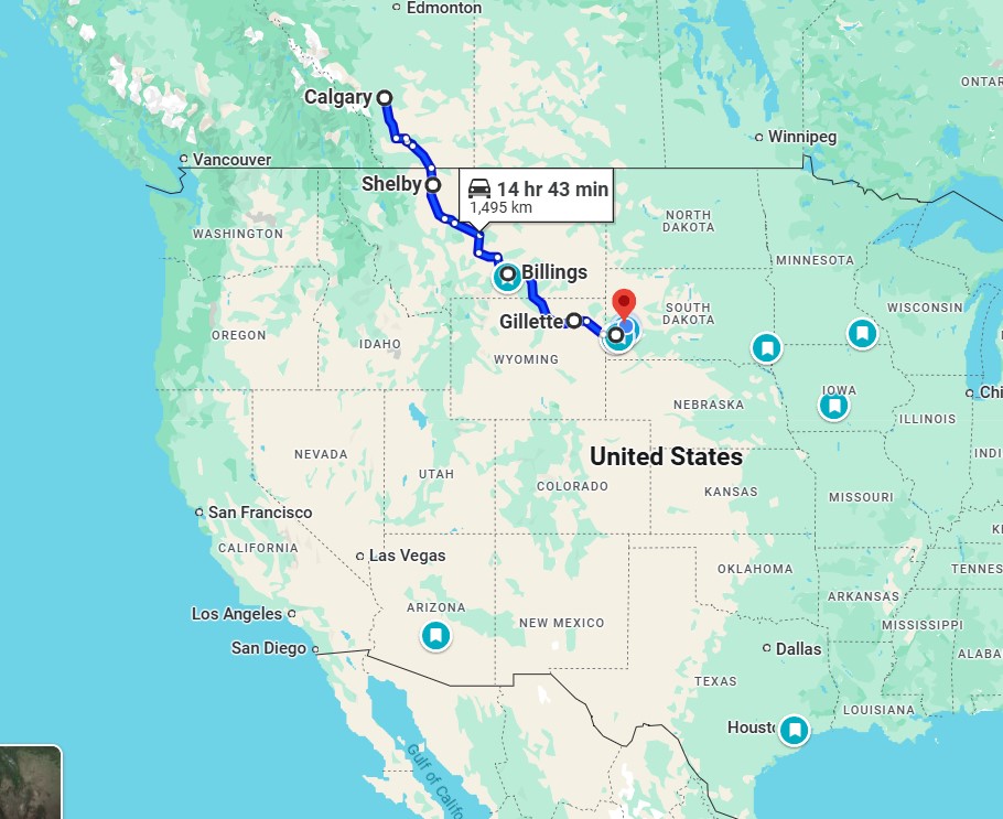 First order of the day is to show the route that we will take which is through Wyoming and then cross the state border into South Dakota. Initially, the drive was through the very flat terrain of Wyoming and once into South Dakata we entered an area called the Black Hills. People have commented to us that it is a very unique region.