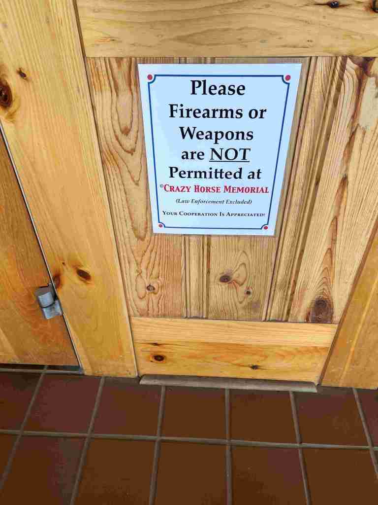 This kind of thing just blows us away. We will never be able to ever get our heads around this. You know, we were driving to Mt Rushmore when we had this guy driving his red pickup in the fast lane very slowly with everyone passing him on the inside. You would think someone would indicate to him to move over but you don’t because you don’t know if the crazy is going to pull a gun out on you. There is just an edge here that you don’t feel in Canada – not to say it wouldn’t happen, but the likelihood isn’t as great.