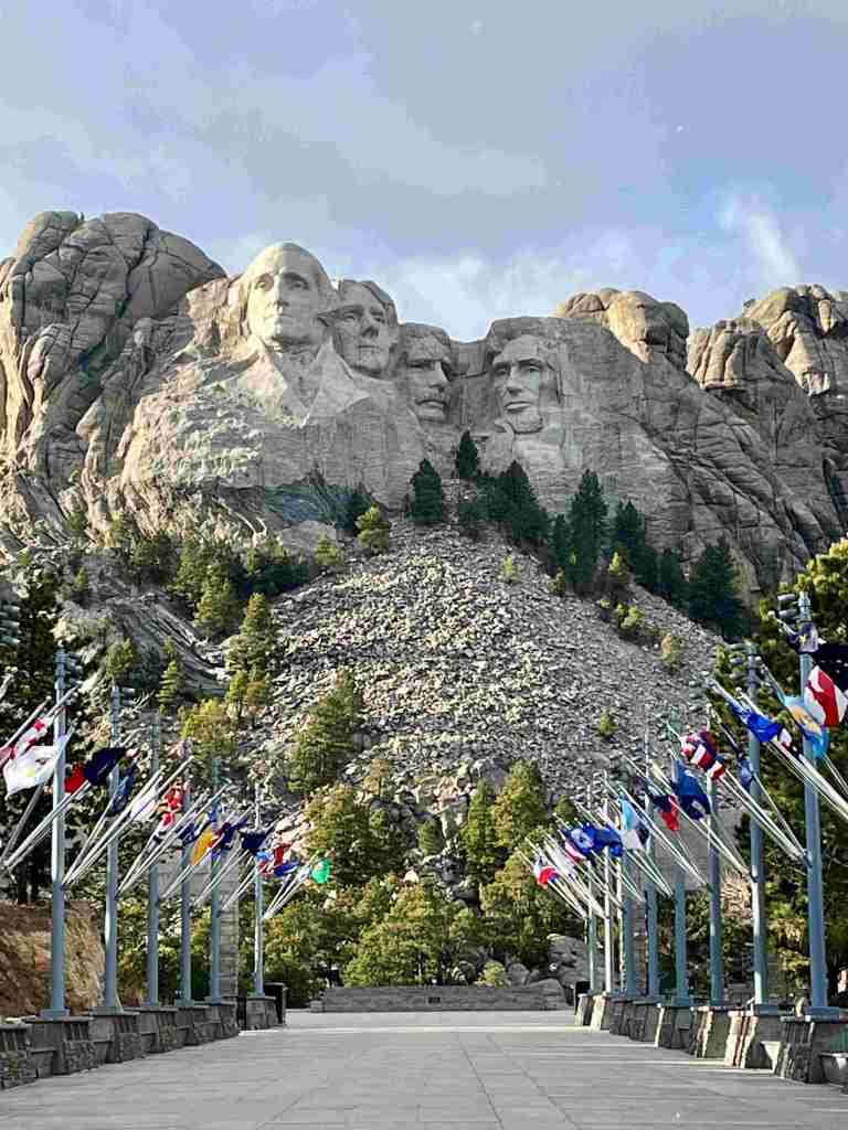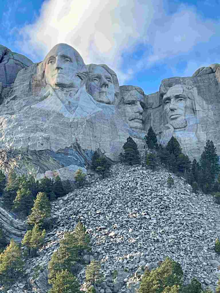 The rock here is slightly different from what is at Crazy Horse and more friable which is why they could use blasting as much as they did. The sculptor, Gutzon Borglum, named it the Shrine of Democracy, and oversaw the execution from 1927 to 1941 with the help of his son, Lincoln Borglum. The sculpture features the 60-foot-tall (18 m) heads of four United States presidents: George Washington, Thomas Jefferson, Theodore Roosevelt and Abraham Lincoln chosen to represent the nation’s birth, growth, development, and preservation. Mount Rushmore attracts more than two million visitors annually.