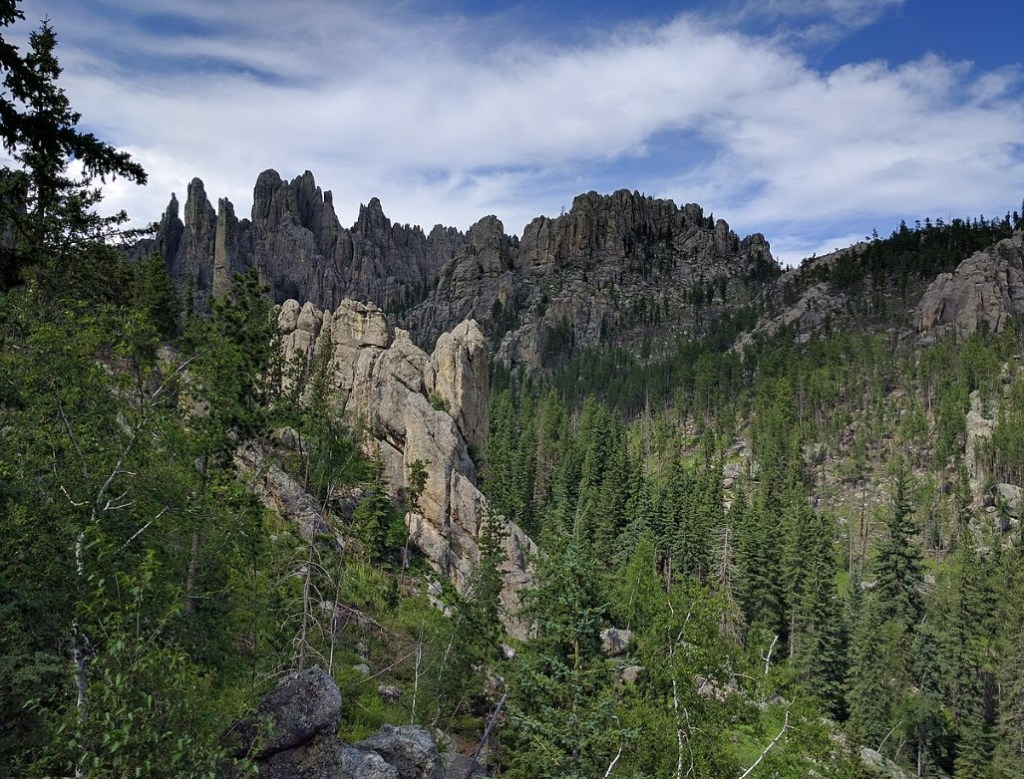 Unique is one way to describe it, but we were both very much taken with it. It formed as a result of an upwarping of ancient rock, after which the removal of the higher portions of the mountain mass by stream erosion produced the present-day topography. The hills are so called because of their dark appearance from a distance, as they are covered in evergreen trees. American Indian tribes have a long history in the Black Hills and consider it a sacred site.