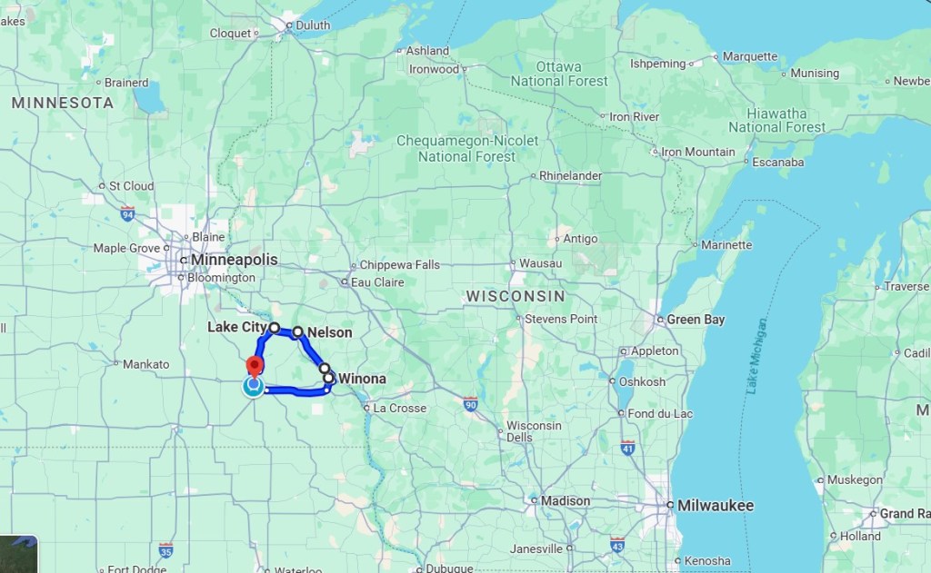 We covered about a 100k loop in total. You can see that we are very close to the Great Lakes and Chicago is only a five-hour car drive away. This area of the country gets some pretty brutal weather from the flat prairies with winds whipping across including the famous Alberta Clipper that they can blame us for. They also get severe weather off the Great Lakes which are huge inland seas.