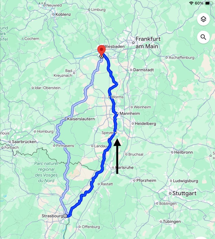 The day after we arrive in Strasbourg, Gabby, Linda, Neal and Randa will me up with Al, Jen and us and introductions will happen. So this is the eight “bum ready” bikers who will be heading down the Upper Rhine from Strasbourg to Mainz over seven days covering approximately 160k’s.