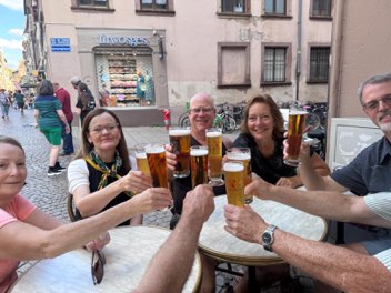 At about 7.00pm we rendezvoused with the remainder of our group in the main square where the cathedral is. Gabby, Linda, Neal and Randa all made it to Strasbourg later in the afternoon and after settling into their hotel it was time to do the meet and greet.