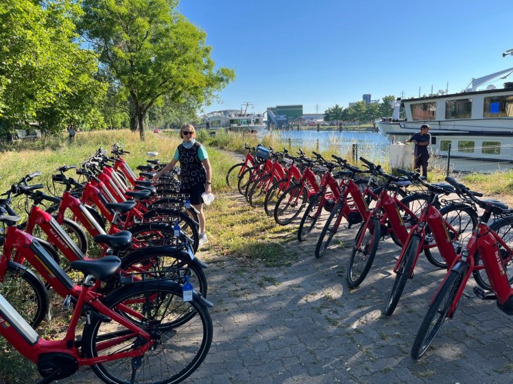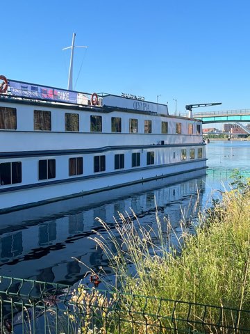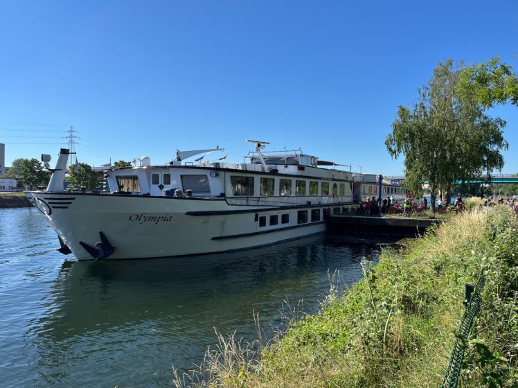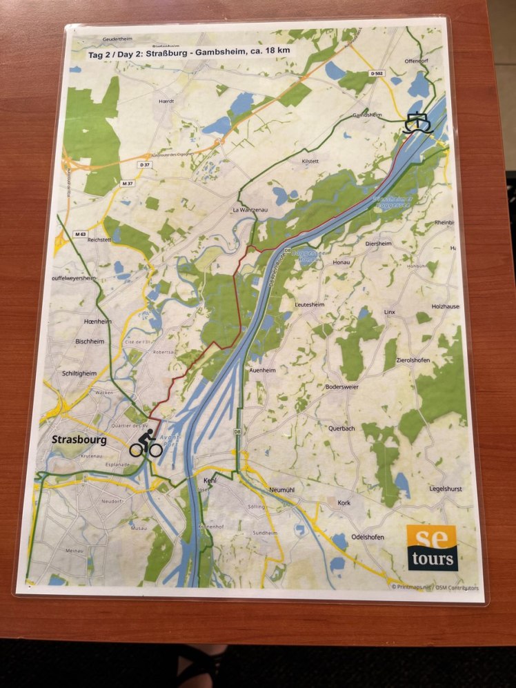 So our ride consisted of only 17k along the Rhine River from Strasbourg to a lock where the boat was awaiting our arrival. It was a pretty cushy ride though it did get to about 32c. Once we met up with the boat, all bikes were man handled back on board and off we went. We then cruised from 3.00pm until 9.00pm and moored up in the town of Gemersheim.