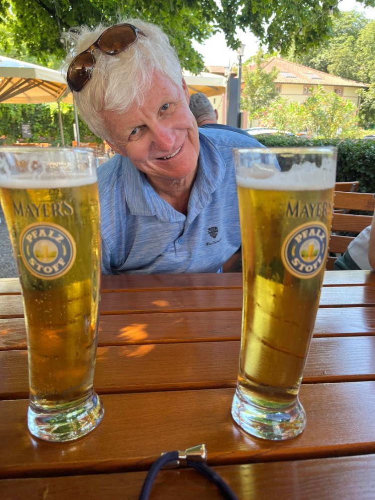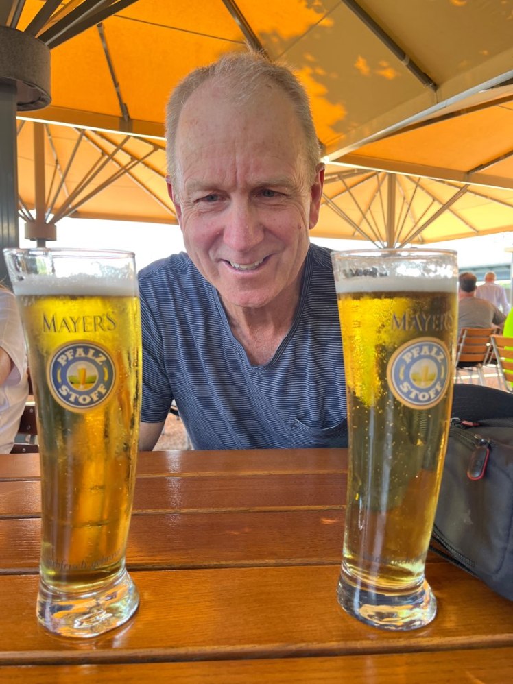 Fras and Al were very taken with the shapes of these beer glasses – had they had room in their luggage, the bier garten would have found themselves shy of two.