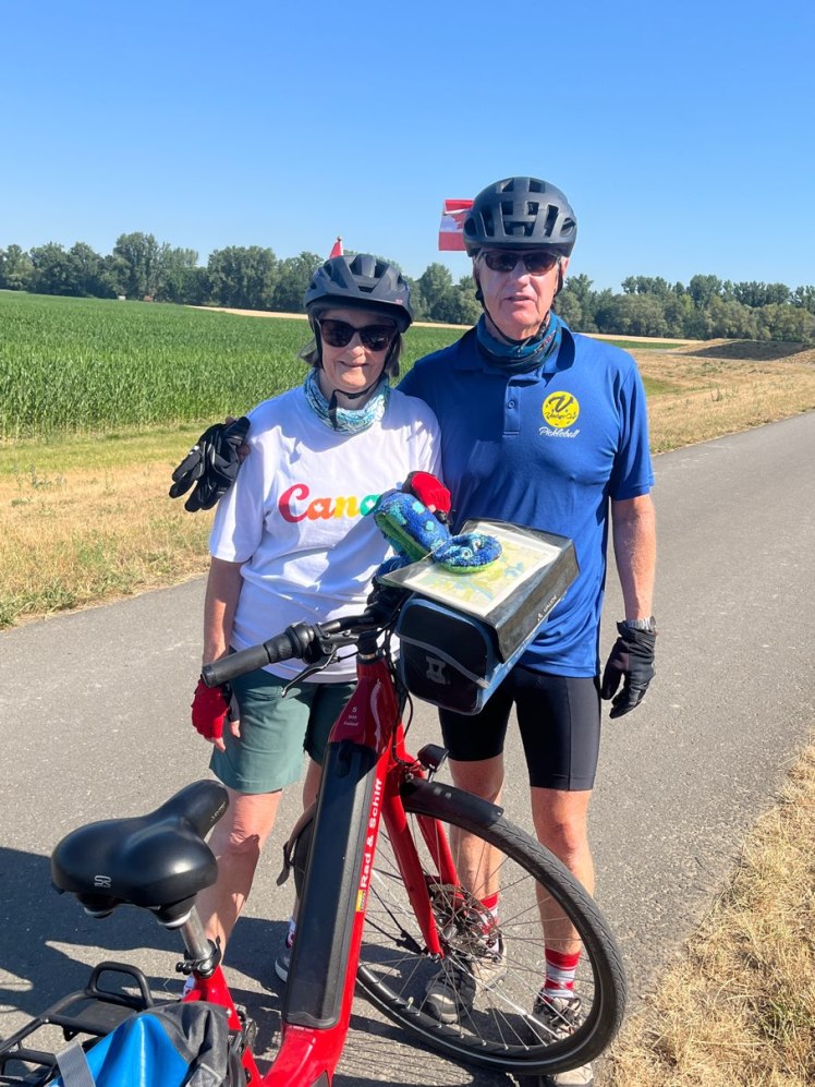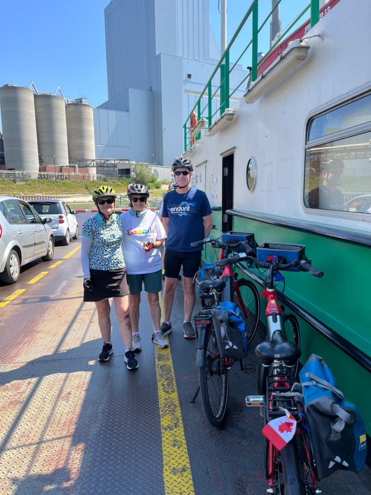 Part of today’s ride included catching a small car ferry across the Rhine River. We pedalled like crazy to catch the ferry as we could see it was getting ready to leave and almost leap frogged onto it just as it pulled away from the bank.