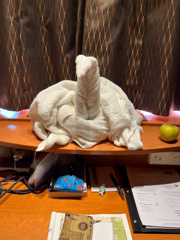 We got back to our cabin to find this rather confusing character who we quickly ripped to shreds as this gave us an extra towel to wring out our washing. You become very inventive with your washing when you travel and we have such a lot we have to do each evening as we have to wash all our clothes that we have worn each day. Normally you can make your clothes last at least two days but not when biking and especially not when travelling in this kind of heat.