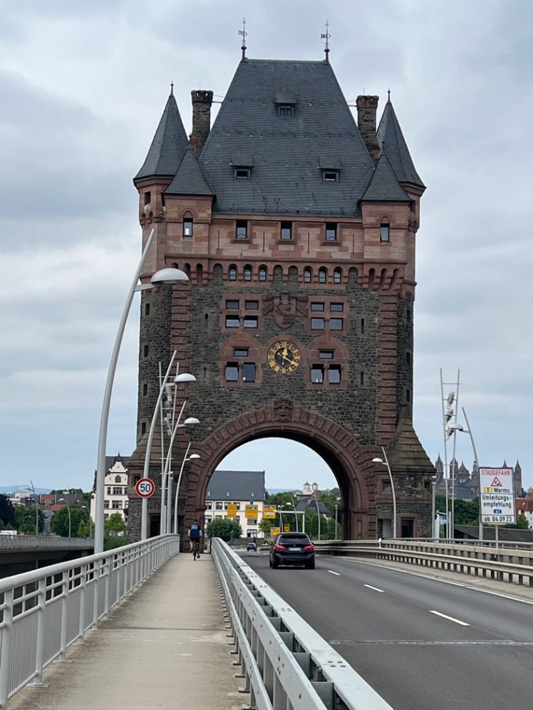 Biking into the city of Worms you come over the Ernst Ludwig Bridge with the Nibelungen Tower standing to attention at the far end. The tower has a total height of 53m.