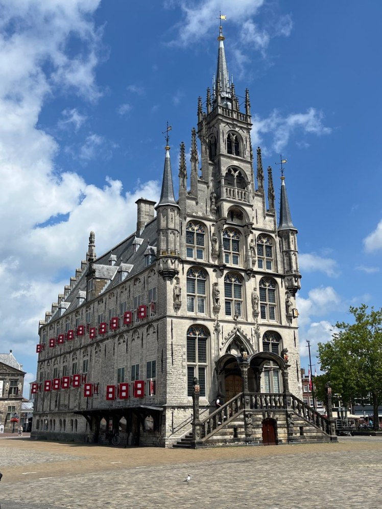 Gouda lies between Rotterdam and Utrecht in the west of the Netherlands. It is known for its array of historic churches and other buildings which makes it popular. It has a population of 75,000 people and of course is most famous for its Gouda cheese.
