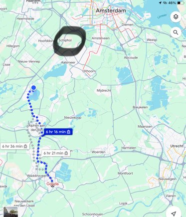 Our route has been following a rough circul over the last five days. We are now getting very close to Schipol Airport which was the world’s third busiest airport by international passenger traffic in 2023. In 2019 there were almost 72 million passengers that passed through the airport. The closer we get the noisier it is going to get for us.