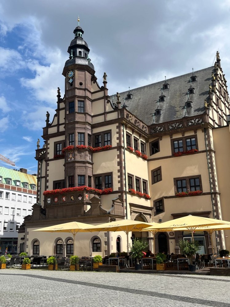 We are in the town of Schweinfurt which is known for being the industrial, educational and cultural hub of Bavaria. Below is the very elaborate Rathaus. It was first documented in 791 and is one of the oldest cities in Bavaria. On 11 April 1945, the US Army invaded the city. During the Cold War, Schweunfurt had the highest concentration of US combat units in the Federal Republic of Germany. In the northwest of Schweinfurt, an American town emerged, with a complete civil infrastructure including all kinds of shops for 12,000 Americans, soldiers and civilians. Until the withdrawal of the US Army at Schweinfurt in 2014, a total of about 100,000 US soldiers were stationed in the town.