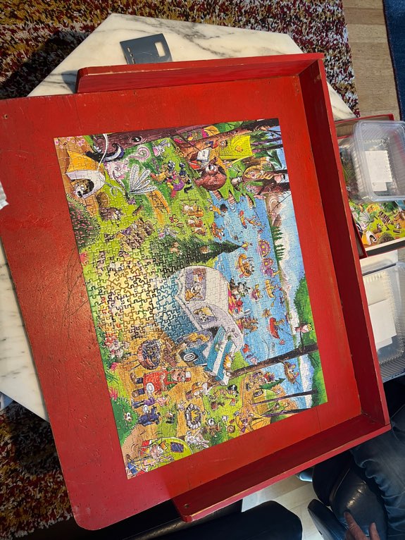 Di and Elfi have always had this tradition of doing a jigsaw puzzle each time we meet up and in this instance it was a 1000 piece comic design one. We started the puzzle before we left on our bike trip and left it at the house, completing it today. Unbeknown to us, Horst had squirrelled away two pieces of it which saw us looking under the couches and behind the the cushions. He received a thumping from the two of us once we discovered what we had done.