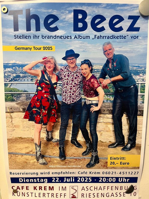 So with Horst and Elfi we have done the elegant classical musical evening in Bad Kissingen in the baroque style grand theatre; followed by the 100 piece Bavarian brass band playing movie scores and popular music in Volkach and finally The Beez who blew us away the most. We didn’t realise we were on a musical tour for this part of our trip.