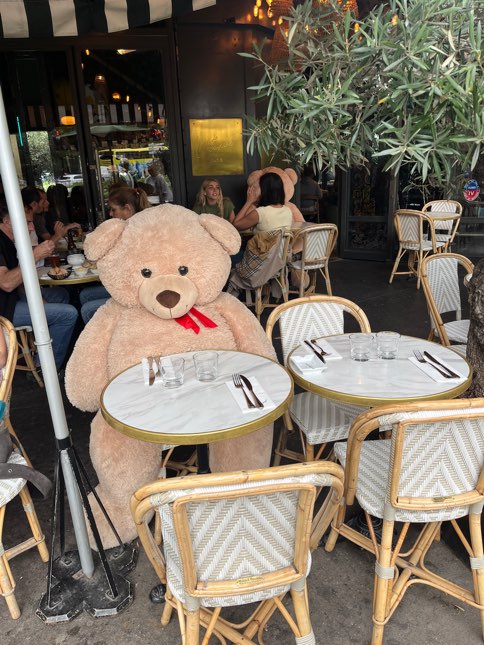 We came across a few cafes that had these large bears set up in them and saw a few people enjoying a coffee alongside.