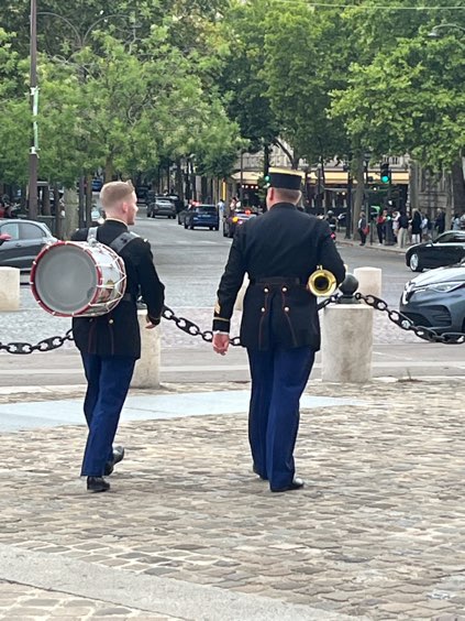 We got a great photo of the bugler and drummer from the ceremony departing.